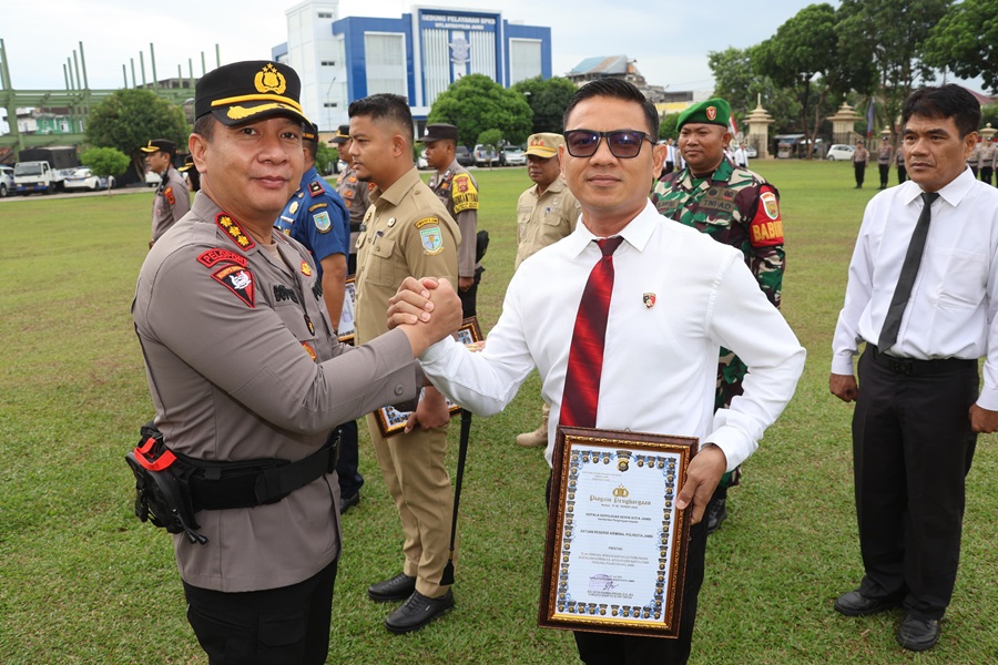 Penghargaan ini diberikan pada Satker/ Polsek jajaran Polresta Jambi dan jajaran Pemkot Jambi dalam rangka mensukseskan Hari Bhayangkara Ke-79.