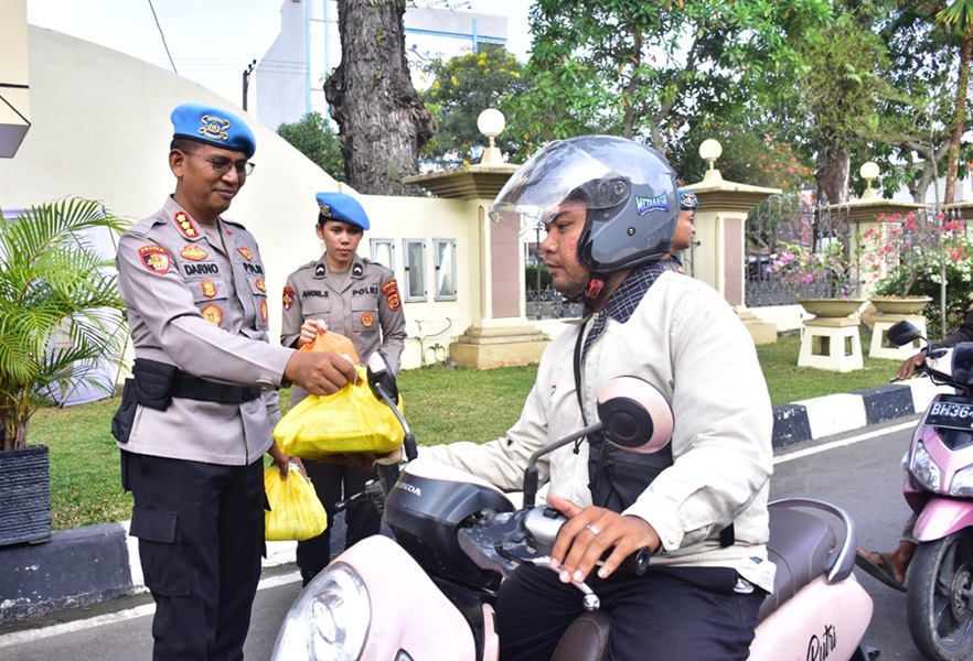 Di tengah momen Ramadhan, Polda Jambi turun langsung membagikan ratusan paket takjil dan sembako kepada pengendara serta warga yang melintas.